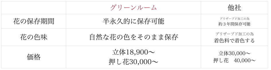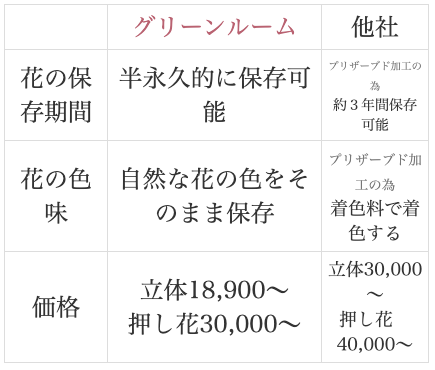 - プリザーブドフラワー加工とは違いますか?